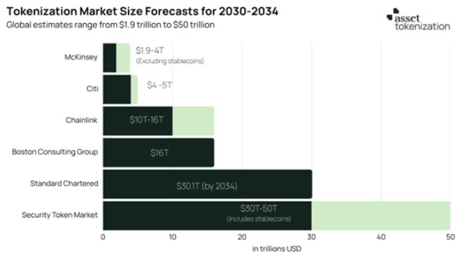 일부 전문가들은 토큰화 시장이 2030년까지 최대 50조 달러까지 커질 것이라고 예측하고 있습니다.