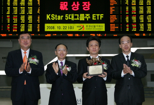 증권선물거래소 유가증권시장본부는 22일 아침, 한국시장을 대표하는 5대그룹 계열사 우량주식 지수를 추적하는 KStar 5대그룹주 ETF의 상장기념식을 개최했다.